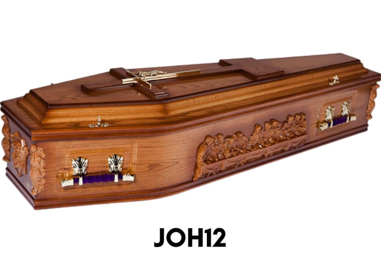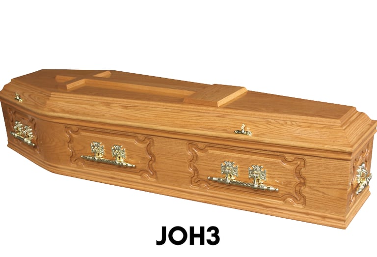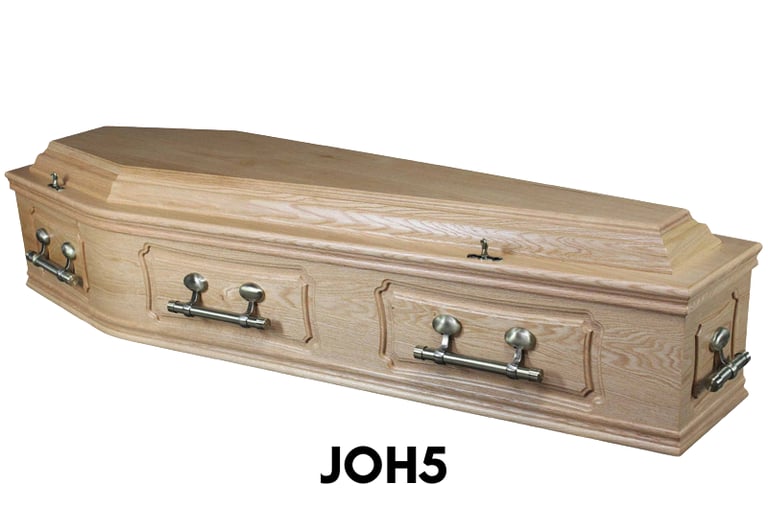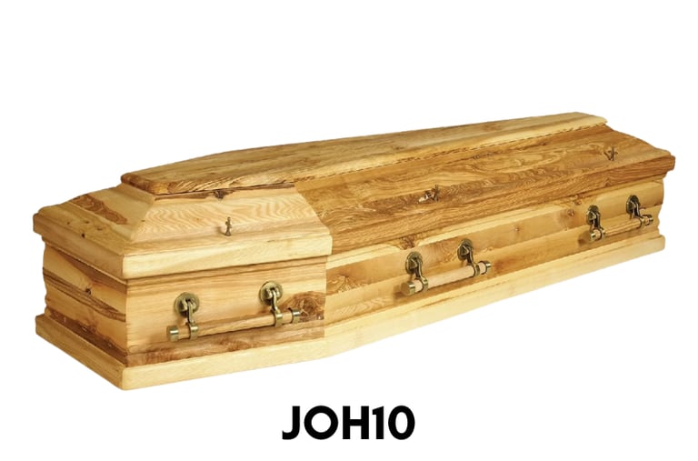 We stock a wide range of coffins and caskets, including eco-friendly options, with choices to suit different preferences and budgets. All are displayed in their completed form, and prices are available on request.